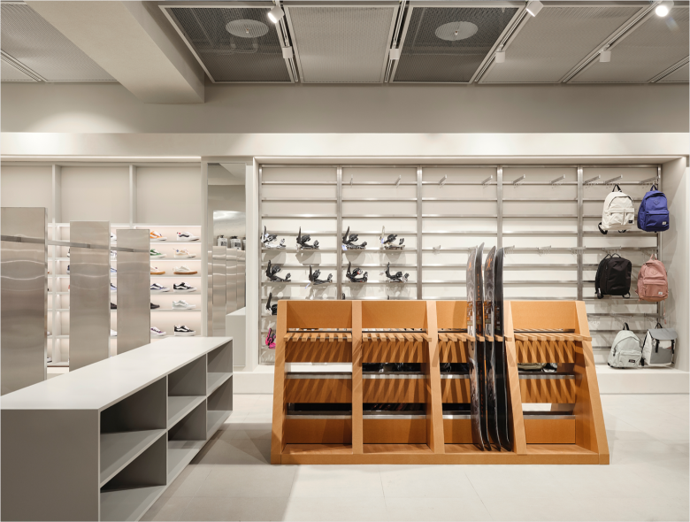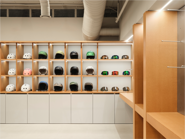 Gegründet 1993 von den Unternehmern Konstantin und Aleksey Mikhailov, hat sich die Traektoria-Kette seitdem zu einem führenden Händler für Snowboards, Wakeboards und alle damit verbundenen Produkte entwickelt und richtet sich an eine junge, trendbewusste Zielgruppe, sowohl Männer als auch Frauen. Obwohl die Marke ursprünglich aus Sankt Petersburg stammt, ist es in Moskau – der dynamischsten Einzelhandelslandschaft des Landes –, wo Traektoria kürzlich sein bisher größtes Retail-Statement gesetzt hat. Ein bestehender Verkaufsraum im dritten Stock des Aviapark, eines Einkaufszentrums im Moskauer Vorort Khoroshovskiy und eines der größten der Stadt, wurde erweitert und vollständig vom lokalen Architekturbüro sinitsa buro neu gestaltet. Mit nunmehr 300 Quadratmetern (3.229 sq.ft.) präsentiert sich der Store mit einem vereinfachten, aber gleichzeitig raffinierteren Designkonzept, das nicht nur den veränderten ästhetischen Ansprüchen der Zielgruppe entsprechen soll, sondern auch darauf abzielt, das räumliche Einkaufserlebnis zu verbessern.